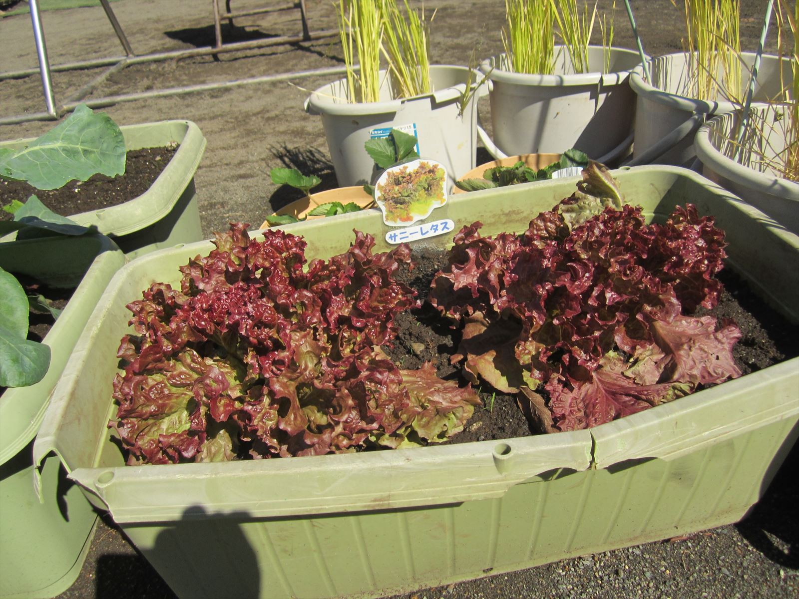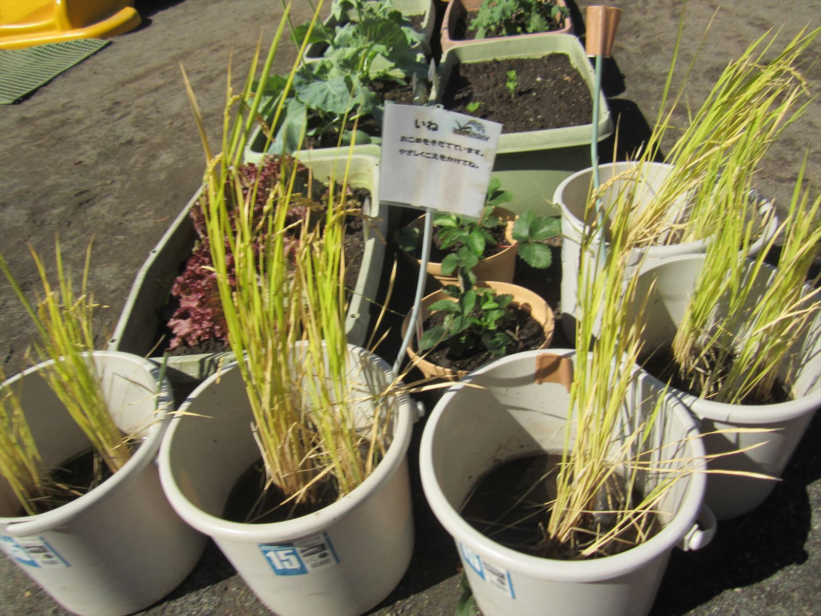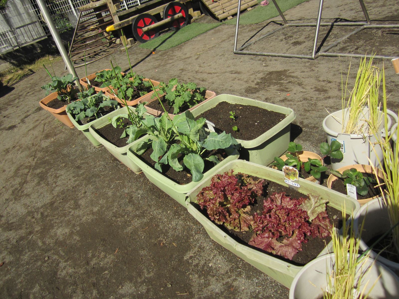 新しい野菜たち コメントをどうぞ この秋、新たに仲間入りした野菜を紹介します。 『いちご』 『ホワイトカリフラワー』 『サニーレタス』 『スティックブロッコリー』 プチベール』 『ブロッコリー』 『芽キャベツ』 他にも『きぬさやえんどう』も収穫中 大きくなって早く食べられるようになるといいね!!元気に大きくなぁれ!! 稲穂もふっくらとした実をつけ、茶色くなってきましたよ!