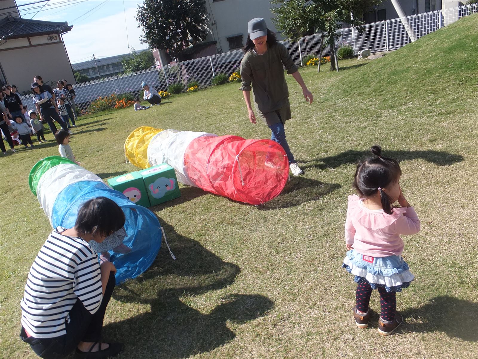自分たちがバルーンの中に隠れるバージョンも体験し、秋の運動会を楽しみました。